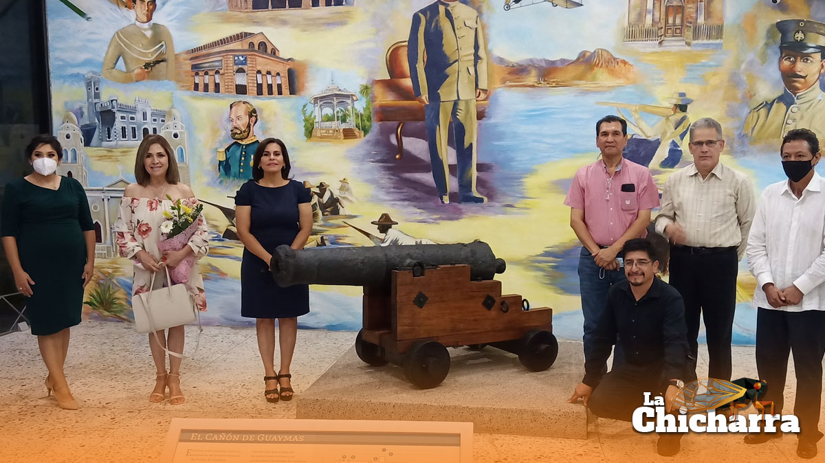 La ceremonia de entrega dentro del Festival “Mar Bermejo, 167 años de la defensa” estuvo encabezada por la alcaldesa, Lic. Sara Valle Dessens, así como por el Antrop. José Luis Perea González, director del Centro INAH Sonora y el almirante Cuerpo General Diplomado de Estado Mayor, José Luis Vergara Ibarra, quienes expresaron la importancia del retorno de esta pieza de pieza de gran relevancia histórica, geográfica y militar.